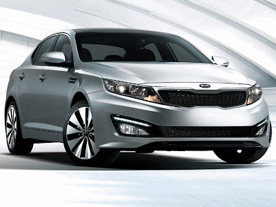 The Kia Optima is currently the flagship sedan for the automaker and the next model gains considerable changes in the exterior cosmetics department. The outgoing Optima is a fairly tame sedan, but Kia is replacing its sedan with a much sportier silhouette – much more akin to a coupe, than a sedan. So much so, Kia says the 2011 Optima will be labeled as a 4-door coupe, rather than a sedan. Following the theme of recent model revisions, new Kia Optima is longer, lower and wider than before, the Kia's coupe-like profile is enhanced by the sweeping chrome arc that flows from A to C pillar, a distinctive design motif that visually lowers the car further still and enhances its cab-backwards proportions.